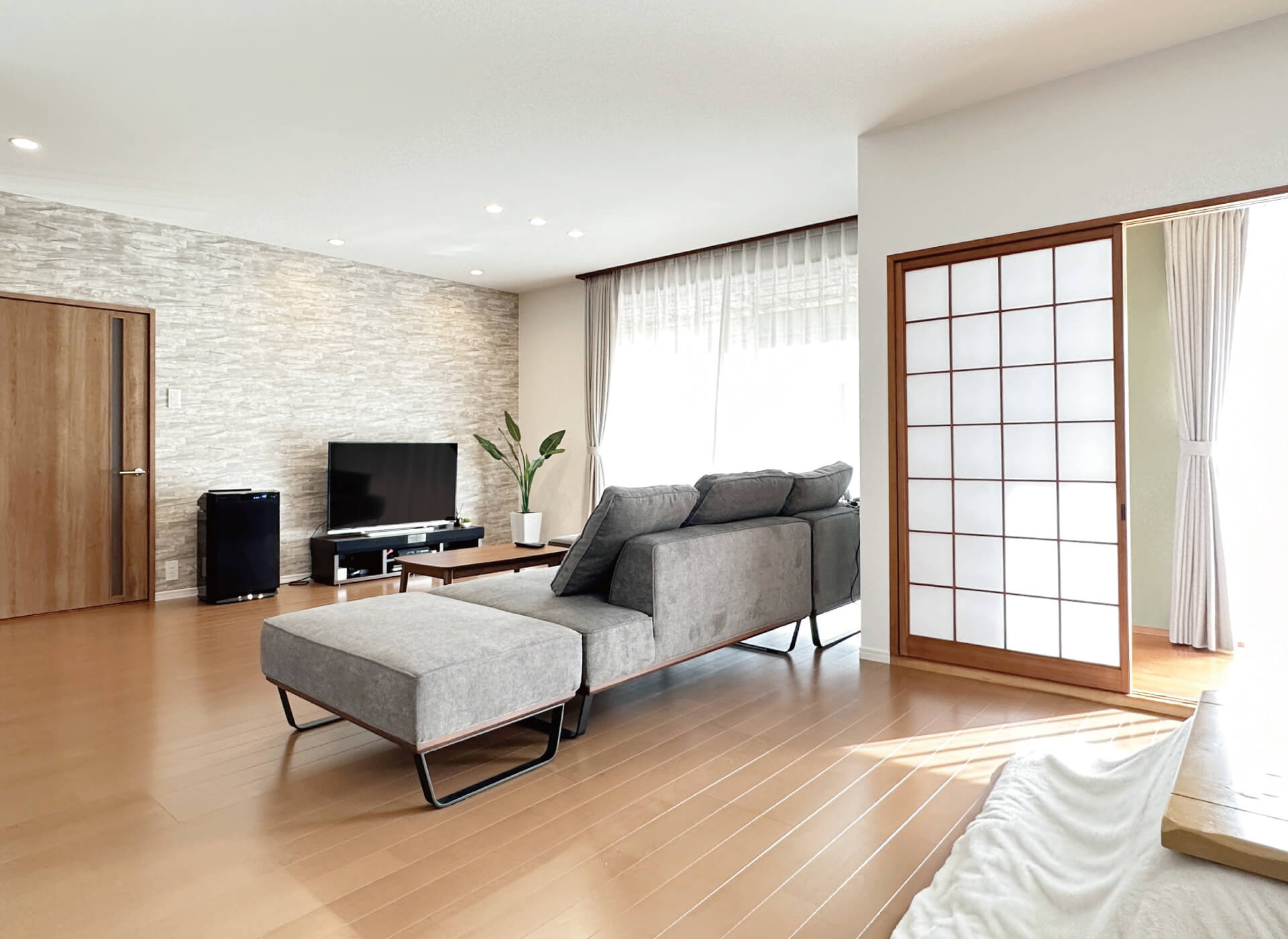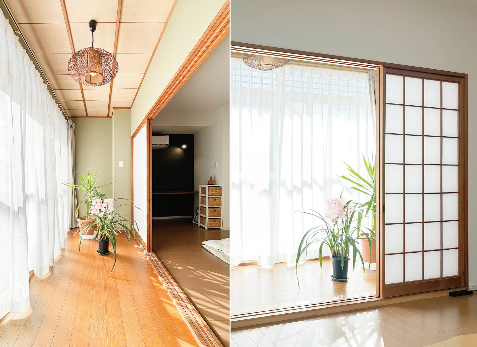 陽当たりのよい広縁は購入時から気に入っていて、床や天井、障子枠、照明器具を活かし、趣きをそのまま残せたので大変満足しています。窓からの光を障子がやわらげ、LDK全体も明るくなり喜んでいます。