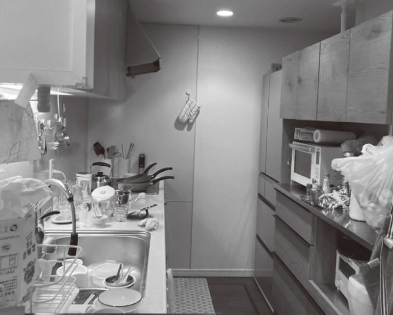 Y様とのコミュニケーションにLINEを活用し、写真を送り合うことで理想のインテリアを実現。現状のお悩みもヒアリングし、キッチンの効率的な動線を提案しました。