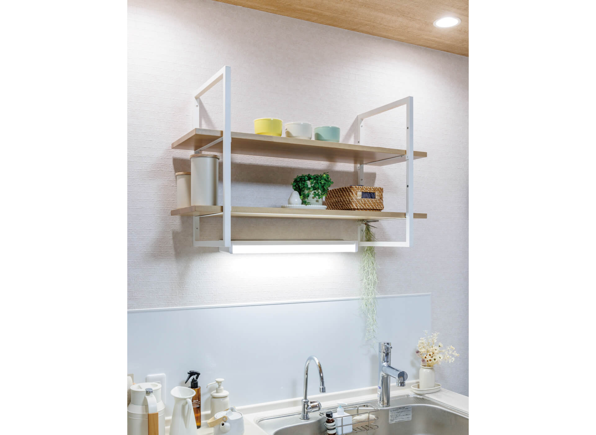 収納として使えるだけでなく、モノを飾って楽しめるオープン棚を取り付けたことで、キッチンで過ごす時間が楽しみに。