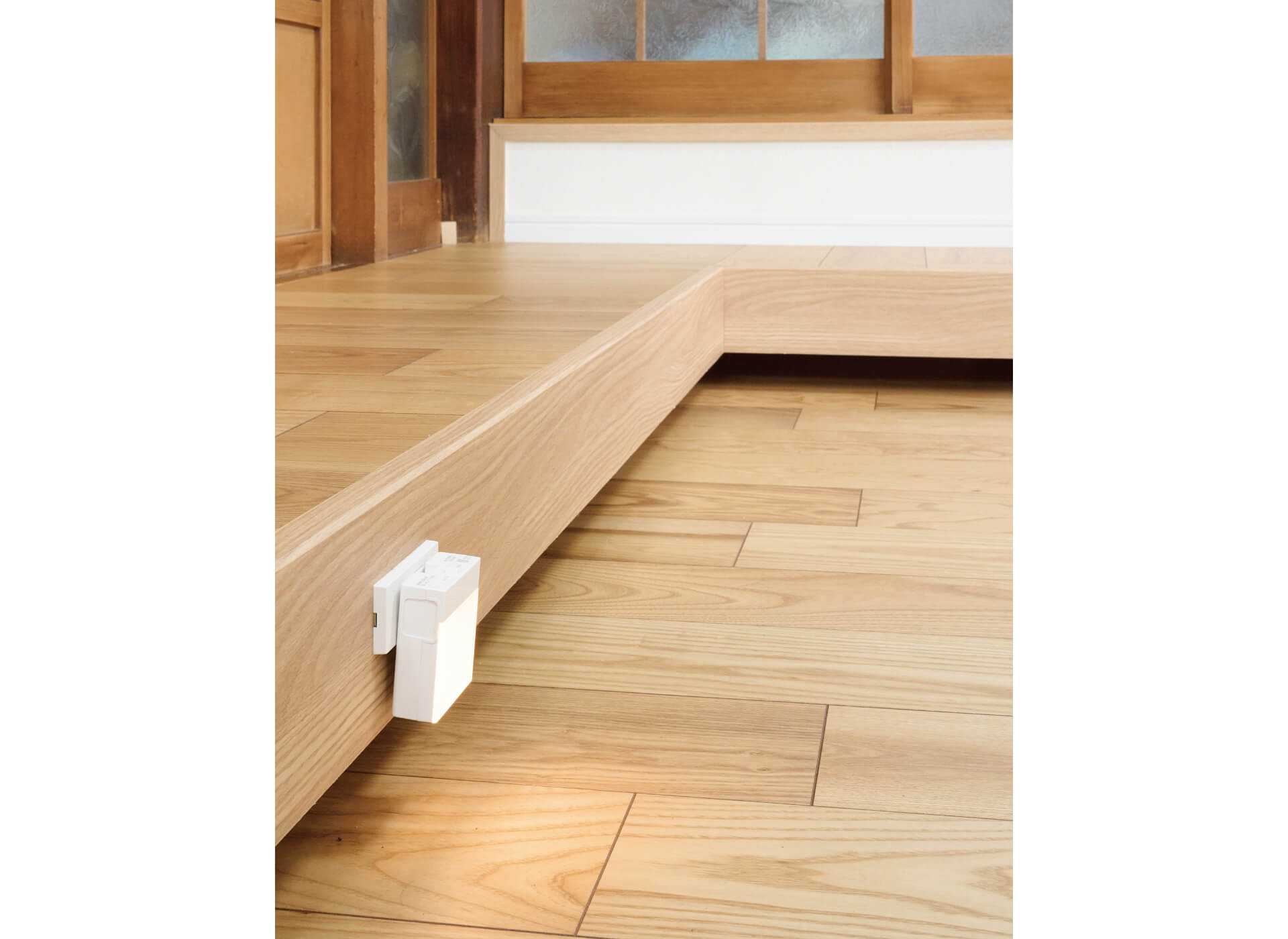 小上がりの部分には、普段は足元灯として、停電時には取り外して非常灯として使える保安灯を設置。さらに、備蓄品の収納スペースも確保しており、機能性と安心感を両立しています。