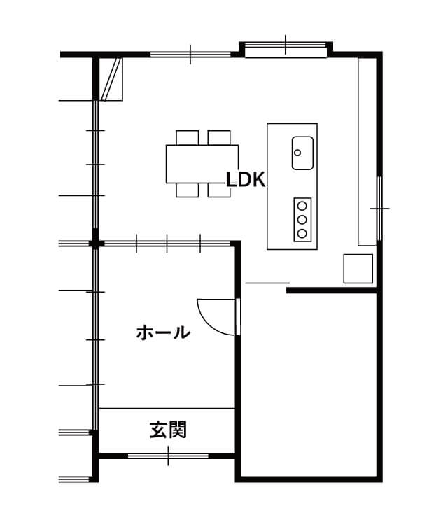 S様の楽しみは毎週末の息子様一家との夕食会。大きくなったお孫さんたちとも広々とした空間で過ごせるように、別々だったキッチンと居間をつなげ、皆で作業できるアイランドキッチンに変更。キッチン上を吹き抜けにして、明るく心地よい団らんの場を実現されました。