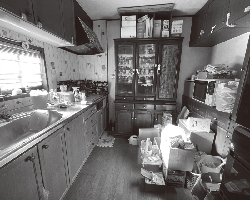 キッチン横の壁を腰壁に変更し、キッチンの孤立感を軽減。リビング・ダイニングと開放的につながり、作業中のご家族との会話が増えたそう。