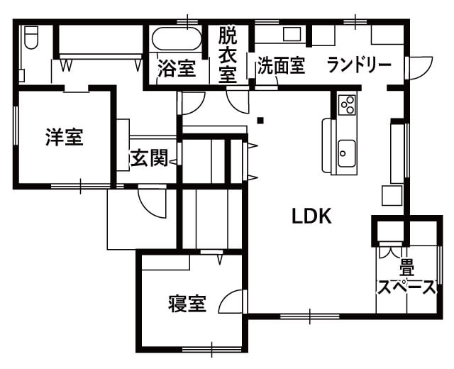 洗面室・ランドリールームは、脱衣室と隣接しているので洗濯がスムーズ。洗ったその場で室内干しができ、勝手口を出ると外干しも。