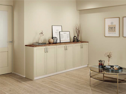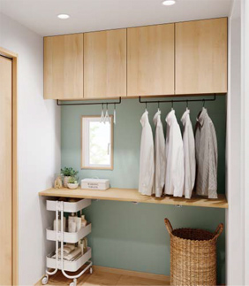 リビングやダイニング、家事室など、収納家具を置きたい場所はいろいろ。でも、インテリアの統一感は崩したくないですよね。パナソニックの多用途収納なら、収納ユニットのサイズも種類も豊富。ドアや床と同じ柄から選べるので、空間全体がすっきりまとまります。
