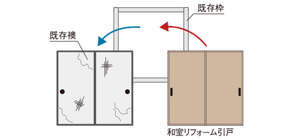 鴨居や敷居をそのまま活用して、和室のふすまや押し入れをリフォームできる引戸です。