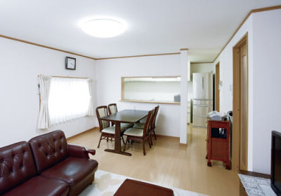 息子様との同居をきっかけに、長年使っていなかった離れを二世帯住宅にリフォームしたN様邸。各世帯の生活空間を上下階で分け、LDKや水廻りなどを共有空間とすることで、親と子が気兼ねなく快適に生活できる住まいになりました。耐震補強を施した上で、住宅の断熱性能を高め、太陽光発電システムやエコキュートの最新設備を採用。光熱費負担の少ない暮らしを目指しました。また、お母様のためにバリアフリー対策も。段差や廊下への手すりの設置をはじめ、急な階段も勾配が緩やかになるように架け替えています。