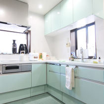 物が溢れ、調理スペースが十分に確保できないキッチンに奥様は悩まれていました。そこで家電を置いても十分な調理スペースが確保できるL型キッチンのプランをご提案しました。毎日なんとか料理していたが、広々とキッチンが使えるので効率もアップしました。工事をして本当に良かったです。と奥様にご満足していただきました。家事の時短ができ、ペットのワンちゃん達とゆっくり過ごす時間が増えたそうです。