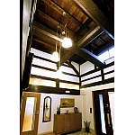 長い年月を経て独特な色合いと風格を持つ梁がゲストをお迎えしてくれる玄関ホール