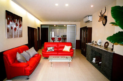 既存の玄関ホールをリビングに取り込み広いリビングに・・・。リビングの土佐漆喰の壁はライティングプランによる「あかり」で陰影を映し出し、癒しの空間を演出。