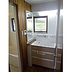 壁材、床材は、元の材料をきれいにして再利用。壁や床のイメージを生かして洗面を選びました。お互いが馴染んだ感じに仕上がり、お客様にもとても喜んでいただけました。