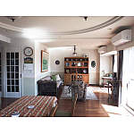 間仕切りを取り払いリビングに取り込みました。お手持ちの家具に似合うよう腰壁を木製装飾モールで見切りクロスの貼り分けをしています