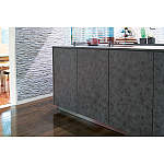 ロータイプのカップボードには普段使いの食器を収納。使い勝手がよくなり、広々と開放的になりました。
