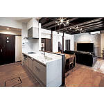 奥様念願のアイランドキッチン。調理中の雑多なカウンターをリビングから見えないように段差をつけました。