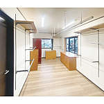 ウォークインクローゼットの棚板は可動式。中央にはハンガーパイプを設置。空間を余すことなく収納スペースにしました。