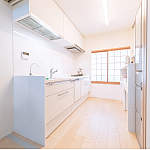 リビング奥から玄関近くに移動したキッチン。買い物帰りの荷物もすぐに運び入れることができ、片付けの負担も軽減されました。