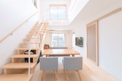 ホワイトとメープルを基調にした、ぬくもりのある上品なインテリア。 幅木をホワイトに変えて、空間全体がすっきりした印象になりました。
