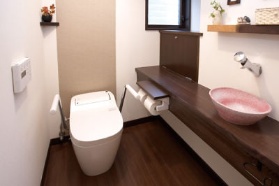 階段下スペースをうまく活かして、広くゆったりしたトイレになりました。