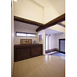 2部屋の和室をつなげたLDKは、多くのご友人をお招きできる大空間に。畳コーナーは一段高くして、いすに座った人と目線が同じになるような設計としました。リビングの上にはロフトを設け、収納スペースも確保されています。LDK同様玄関も吹き抜けにし、住まい全体が開放的になりました。