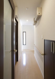 暗くなりがちな廊下は、縦すべり出し窓を設置して閉塞感を解消しました。