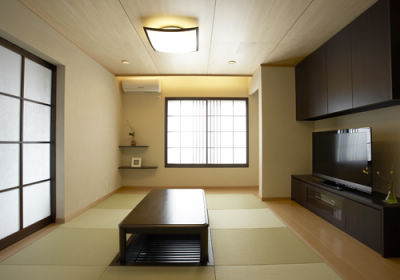息子様の結婚をきっかけに同居することにされたO様。「家族そろって掘りごたつで食事をしたい」というご希望をかなえるため、離れていたダイニングキッチンを和室の隣に移動。和室の南側を増築して広げ、天井を高くして間接照明を埋め込みました。琉球畳の部屋の中央には掘座卓を設置し、家族5人がゆったりと座れます。明るい床にダークブラウンの建具や家具を配した軽快な和モダンの空間は、訪れたお客様からも「旅館みたい」と大好評。窓や建具を通してやわらかな光が差し込む、心落ち着くだんらんの場が完成しました。