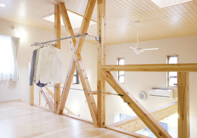 トップライトからの光が近く、南北に風通しもよく、洗濯物の部屋干しにも大活躍