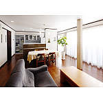 定年後の生活は、ワンフロアー内でできるようにと考えたK様。和室を撤去しLDKにとお考えでしたが、構造上どうしても抜けない壁と柱がネックになっていました。そこで、構造壁を飾り棚にアレンジし、ハイステップの対面キッチンに取り込むプランを採用。また、柱は補強も兼ねて太くし、タイル調に装飾することで空間のアクセントになりました。さらに、キッチン横に配置した洗面室も、ガラスブロックで採光が確保できるよう工夫。老朽化した設備を入れ替えながら、デザイン性にもこだわった理想の生活空間が実現しました。