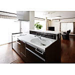 ハイステップ対面キッチンは、手元が隠せるから急な来客時も安心。水切り収納付きで洗い物もラクラク