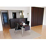 ご両親のお住まいの近くを条件に中古マンションを購入されたT様。古くても自分たちの思い通りの空間をつくりたいとリフォームされました。お料理しながら子供の姿が見えるようにと、対面式のキッチンに変更。さらに、隣接する和室を撤去し、広びろとしたリビングダイニングを実現しました。また、和室の押し入れを活かした大型収納や、キッチンのカウンター下にも収納を設置。収納力の高さが魅力です。キッチンとリビングに一体感が出るよう、ダークカラーで揃えることで、統一感のあるモダンな空間になりました。