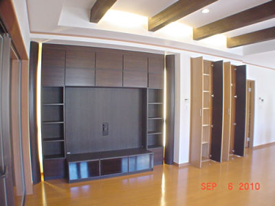 天井の化粧梁を間接照明が照らし雰囲気が良くなりました。