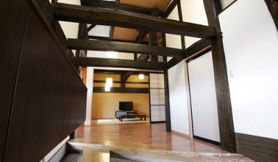 I様邸は築100年。老朽化が進んだことから、リフォームを決められました。代々受け継がれてきた建物の面影を残すため、梁や柱などを再利用。玄関を入るとすぐに、その歴史の風格を感じることができます。また、耐震性、断熱性も見直し、住みやすさや安心感もしっかりと追求しました。キッチンは、奥様が憧れていたという対面式を採用。こちらでも梁の美しさを活かすためウォールキャビネットのない、より開放的なスペースに。各部屋共、歴史とモダンが共存する癒やしの空間へと変身を遂げました。