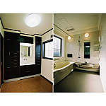 左≫使い勝手のよい収納充実の洗面ドレッシングを採用。右≫お孫さんと入っても余裕のスペース。