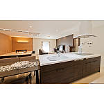 何かとご友人が集まることが多いというT様ご夫妻。「ホームパーティが楽しめる広々としたLDKが欲しい」とのご要望で、柱のない倉庫の特長を活かし、LDKは約35帖の大空間。間仕切りのない開放感あるスペースに、アイランドキッチンや和室風の小上がりがアクセントになっています。