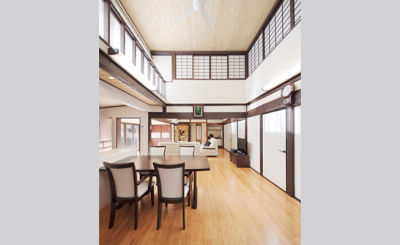 お店と住居の区別が曖昧だった間取りは、お店の奥に前室を設けることで解消。プライベートを確保するだけでなく、訪れたお客様やご近所さんとの語らいもできるスペースです。そこから中に入った住居スペースは、もともとあった和室を一つにして大きなLDKに。天井の低さがお部屋に圧迫感を与えていたため、2階の和室を撤去して吹き抜けにし、上への広がりのある空間に生まれ変わらせました。また「冬場の寒さが気になる」とのお悩みも、床暖房を採用して足元からぽかぽかとあたたかいお部屋に生まれ変わり、N様もゆったりくつろいでいらっしゃるようです。