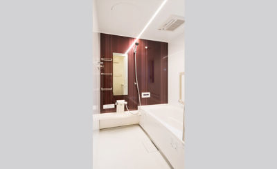限られた面積を有効に活かすため、3階建てのテクノストラクチャー工法を採用。正面の外壁は印象的なR壁設計に。1階のお施主様世帯のフロアは、テクノストラクチャーならではの約26帖の大空間LDKが実現しました。赤のキッチンがピアノの色とマッチし、見た目にも美しいハーモニーを生んでいます。上質感のあるギャラリースペースはひときわ目を引き、多趣味なT様にふさわしい仕上がりに。「親しい友人を集めてミニコンサートを開くのが夢だったんです」と、理想のライフスタイルにぐっと近づけたご様子でした。