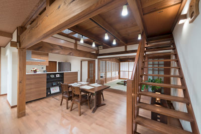 H様邸は、昭和初期に建てられた築85年の大きな和風建築。風格漂うこの家を「建て替えず、ずっと住み続けたい」とのご希望から、もともとあまり使われていなかったという北側の2室と縁側をLDKに間取り変更なさいました。「独立していて使いにくかった」と奥様が語るキッチンは、見通しのよい対面タイプへ。収納も増え、使い勝手がぐっと良くなったそう。