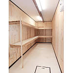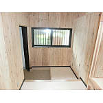 2階への階段を取り除き、床、壁、天井共、ベニヤで仕上げ棚も新設。