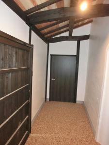 土間とドアを新しくし、壁は漆喰、床は洗い出しで仕上げる。