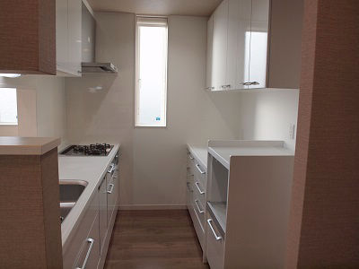 カウンターキッチンでリビングの様子を見ながら料理出来て奥様も満足。