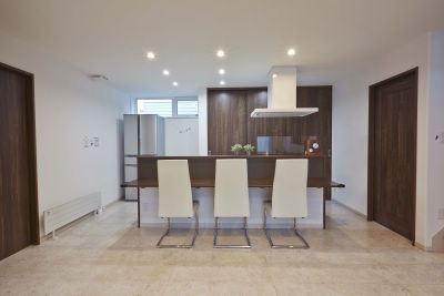 そんなリビングに合わせて、壁付けだったキッチンも、ぐるっと回遊できるアイランド型へ変更。家事の動線をさえぎることなく、使いやすさが格段にアップしました。さらにキッチンの壁側には、大容量の収納を設置。必要な物はしっかりとしまえて、さっと扉を閉めれば見た目もすっきり。開放的で一体感のある居心地のいいLDKに生まれ変わりました。