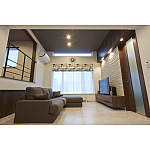 縦にゆとりのある空間を最大限に生かして、元々あった1階の和室は、床を1メートルほど上げて、中二階に変更。リビングに面した側は視線をさえぎらないアイアン柵とすることで、リビングの様子も一目で見渡せます。和室の下はリビングから70センチほど床を下げた半地下スペース。収納スペースもしっかり確保し、おもちゃや遊び道具をたくさん置ける子どもたちのプレイルームです。隠れ家のような居心地は、まるで秘密基地。「家に来た友達のお子さんは、みんなここで遊んでますね」と、M様も大満足。