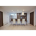 ご家族が増えて玄関やLDKも手狭になり、何かとお困りだったM様。そんなお悩みをすべて解決できるよう、1階は部屋数を変えずに、リビングの天井高を90センチ高くした「プチ吹き抜け」を採用。屋根や壁、基礎を外断熱にすることで小屋裏空間を減らし、その分、縦に広い伸びやかな家族の共用空間が生まれました。