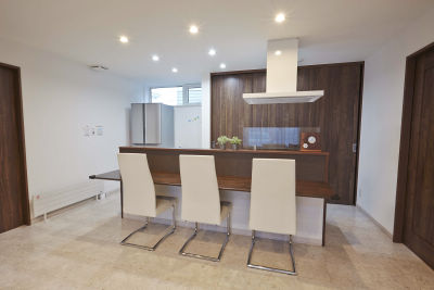 そんなリビングに合わせて、壁付けだったキッチンも、ぐるっと回遊できるアイランド型へ変更。家事の動線をさえぎることなく、使いやすさが格段にアップしました。さらにキッチンの壁側には、大容量の収納を設置。必要な物はしっかりとしまえて、さっと扉を閉めれば見た目もすっきり。開放的で一体感のある居心地のいいLDKに生まれ変わりました。