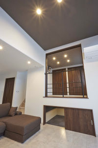 縦にゆとりのある空間を最大限に生かして、元々あった1階の和室は、床を1メートルほど上げて、中二階に変更。リビングに面した側は視線をさえぎらないアイアン柵とすることで、リビングの様子も一目で見渡せます。和室の下はリビングから70センチほど床を下げた半地下スペース。収納スペースもしっかり確保し、おもちゃや遊び道具をたくさん置ける子どもたちのプレイルームです。隠れ家のような居心地は、まるで秘密基地。「家に来た友達のお子さんは、みんなここで遊んでますね」と、M様も大満足。