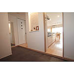 玄関横に設けられた土間も、じつは便利な工夫がたくさん。買い物帰りの際も、ベビーカーを置いたままドアを開けてそのままキッチンに荷物が下ろせるなど、奥様にうれしいスマートな生活動線が画期的です。靴だけではなくコート収納も設けており、玄関まわりはいつでもスッキリ。また、「和室のある家で育ったので、和室はどうしても欲しかったんです」とT様のご要望を叶えた2間続きの広々和室を新設。間仕切りの開閉でお部屋をセパレートにできるため、開放的な広間としても、将来的には子供部屋としても使えるフレキシブルな仕様です。和室横のワークスペースは書斎や勉強机を兼ねており、お子様が大きくなったら、ここで並んで勉強するのが夢なのだそう。普段の家事から、家族の未来まで“つながり”を大切にしたプランニングです。