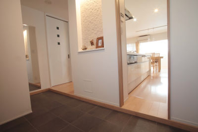 玄関から入ってすぐ目に止まる壁には、小物が飾れるニッチを。
