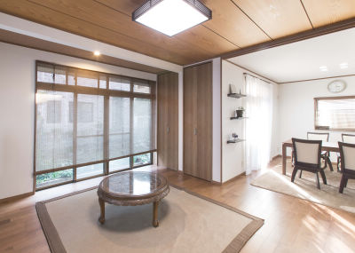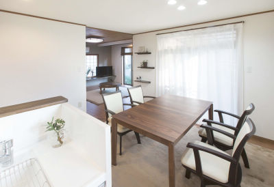 ご両親がお住まいだった家に転居されたY様。水廻りの老朽化や、部屋全体が薄暗いことからリフォームすることに。独立していた和室は間仕切りを取り払いダイニングと一体化。欄間や障子は残して開口部を増やし明るい「和のリビング」を演出しました。思い出深い住まいの面影が、他にはない落ち着きを与えてくれます。閉塞感のあったキッチンも、収納を集約し、カウンターを対面式にすることで開放的に。光に包まれる和みの空間に仕上がりました。