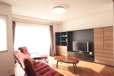 収納家具を置く必要がなくなり、移動もラクラクです。LDKがひとつの空間になったので、家族の気配も感じられるようになりました。