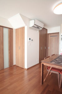 お嬢様の車椅子生活に対応すべく「1階は全面的に車椅子での移動がスムーズにできるように」とご希望のK様。車椅子での移動に妨げとなる凹凸があった収納は壁面いっぱいをフラットに使うキュビオスを採用。またリビングの動線の妨げにならないよう、壁面に多目的に使えるカウンターを造作しました。ダイニングとの間には3枚片引き戸を採用し、より広い空間になるよう工夫。部屋がすっきりと整理され、玄関からリビングまでスムーズに移動できるようになりました。