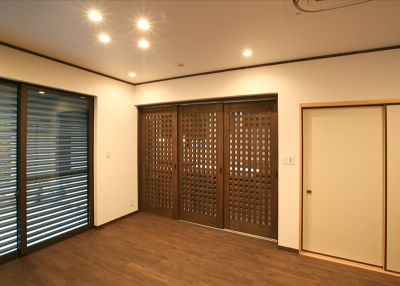 こだわりの詰まった一戸建替え住宅。 風通しや日当たりのほかにも、ご家族の動線を意識し、コミュニケーションを大切にする間取りで、楽しく暮らせる快適な住まいに。空間を最大限活かし、たっぷりの収納スペースと、落ち着いたデザイン、暮らしやすさの同居する住宅へ。