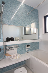 出窓部分を増築して1坪タイプにサイズアップ。脚を伸ばしてゆったり入浴できます。